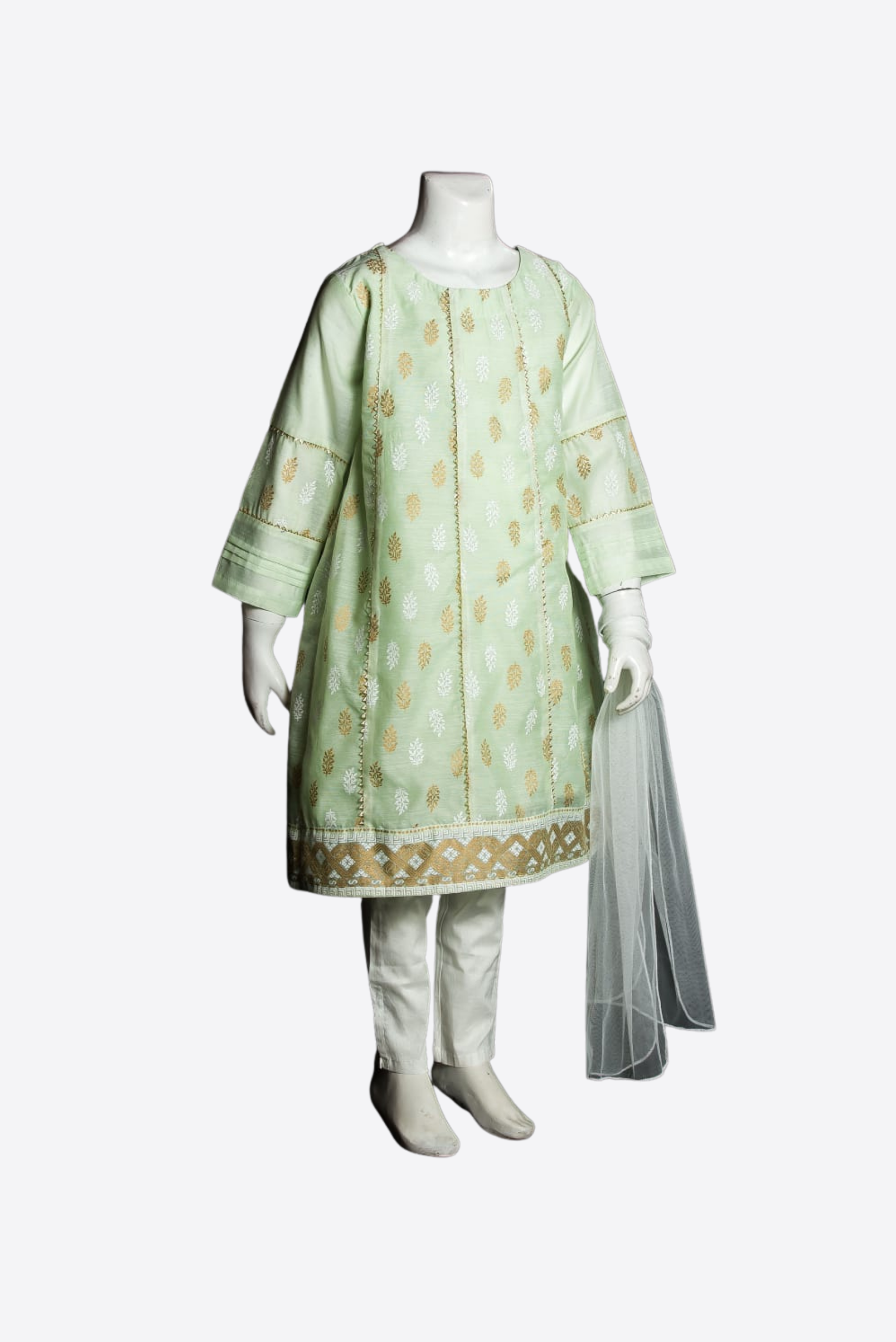 A breathable, lightweight Shalwar Kameez for women that is perfect for Pakistani Style. Made of fine polyester fabric, this kameez will keep you comfortable all day. Features a light mint green color and is machine-washable.
