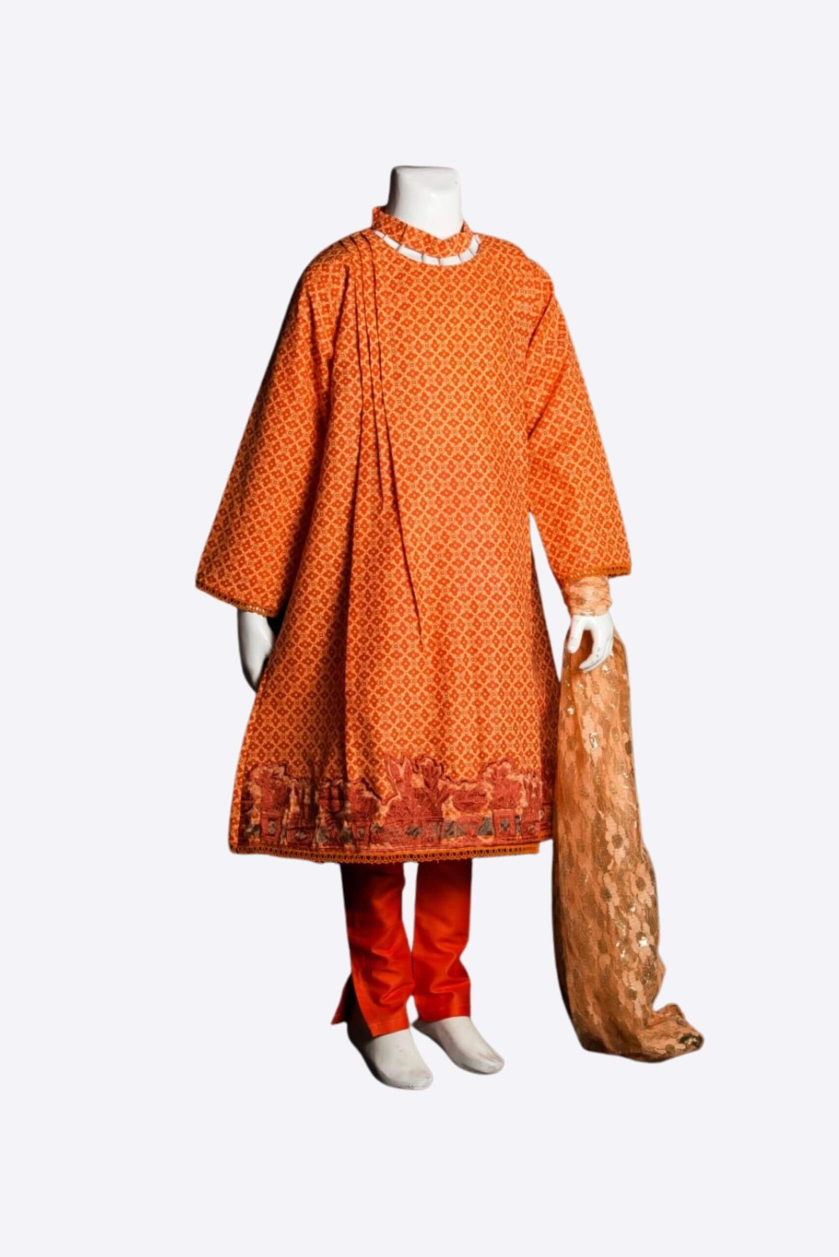 This Orange Shalwar Kameez is Premium quality material to ensure durability and longevity. Traditional Pakistani style, crafted with love and care.Handmade by skilled artisans who put their heart into each piece.